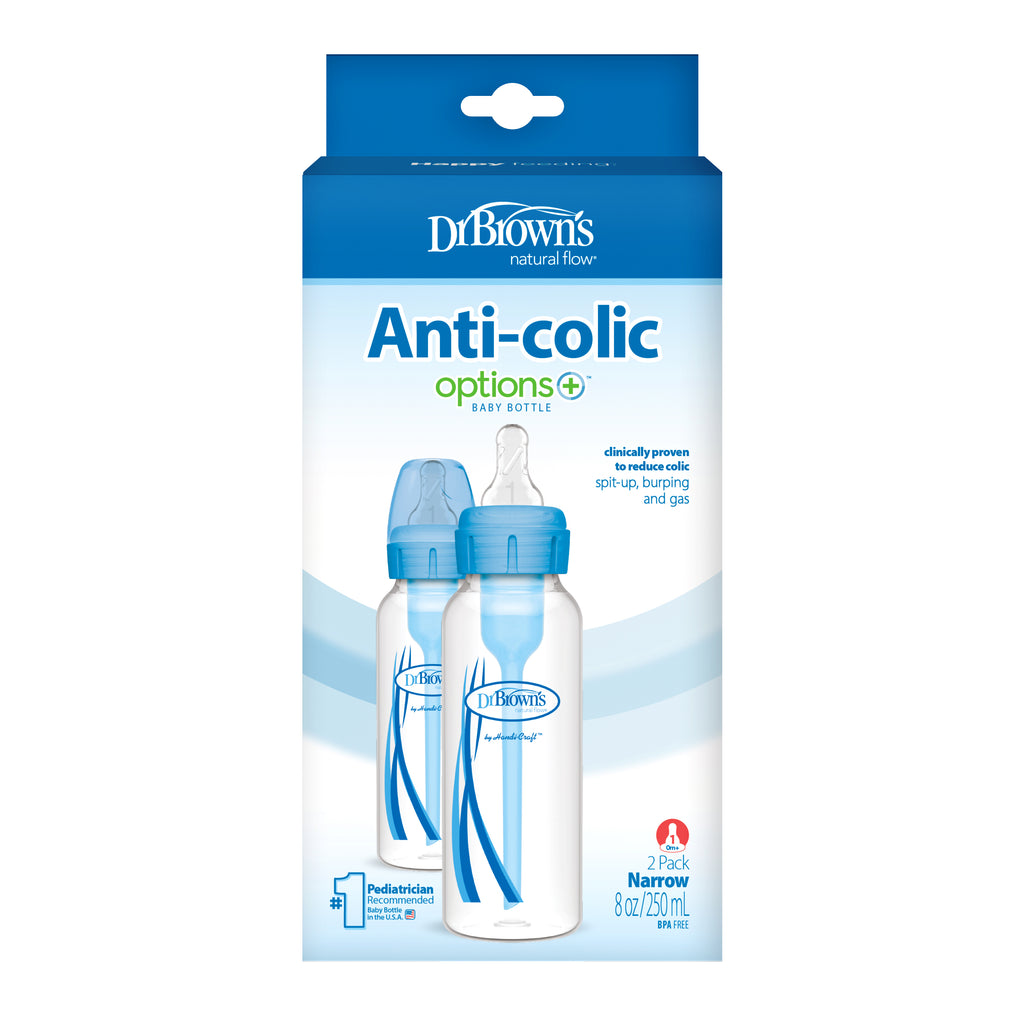 Tražite rješenje za hranjenje koje smanjuje grčeve i kolike kod vaše bebe? Dr. Brown's Options+ paket s dvije polipropilenske bočice od 250 ml s uskim grlom u plavoj i rozoj boji pruža inovativni ventilacijski sustav koji sprječava stvaranje vakuuma, smanjuje unos zraka i dokazano ublažava pojavu kolika, podrigivanja i bljuckanja. Ove bočice pomažu očuvati važne vitamine u mlijeku i osiguravaju mirnije hranjenje svaki put.