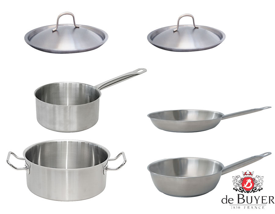 De Buyer posuđe od nehrđajućeg čelika s višeslojnim magnetnim dnom i zavarenim ručkama.