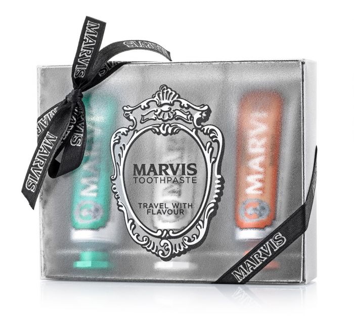 Marvis darovni set sadrži tri osvježavajućih, kremastih zubnih pasti u praktičnim veličinama. Prikladan je za putovanja ili jednostavno otkrivanje jedinstvenih okusa Marvisove linije proizvoda. Svaka od tri ukusnih zubnih pasti jedinstveno pruža dugotrajan i ugodan okus svježine po izvornoj Marvisovoj formuli njege i zaštite zuba.